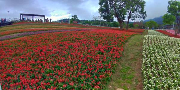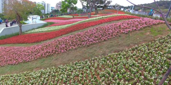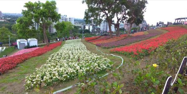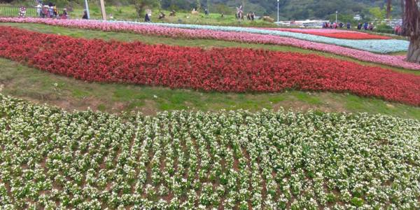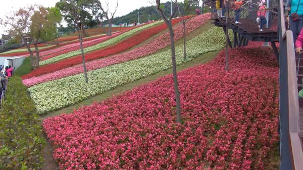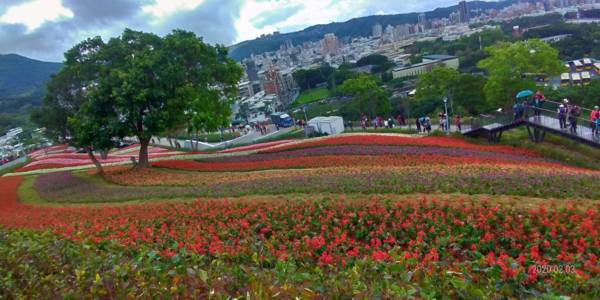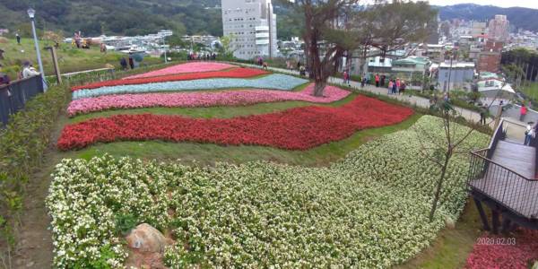 北投社三層崎公園賞花海不必去日本富良野,北投秀山消防分隊前面就有了,雖說稍微迷你版,卻省了機票錢,欣賞的是同等級的美景,種植台灣常見的草花:一串紅、四季海棠、銀葉菊,順著斜坡,以色彩分區,模仿日本富良野的花毯,也讓今年新年有個踏青好地方,目前花海正熱鬧的轟轟烈烈,賞花要及時。