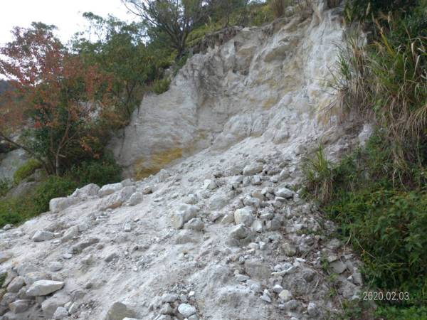 曾經被大量開採的【北投土】白色山壁。↓↓↓