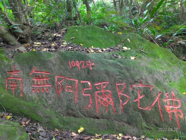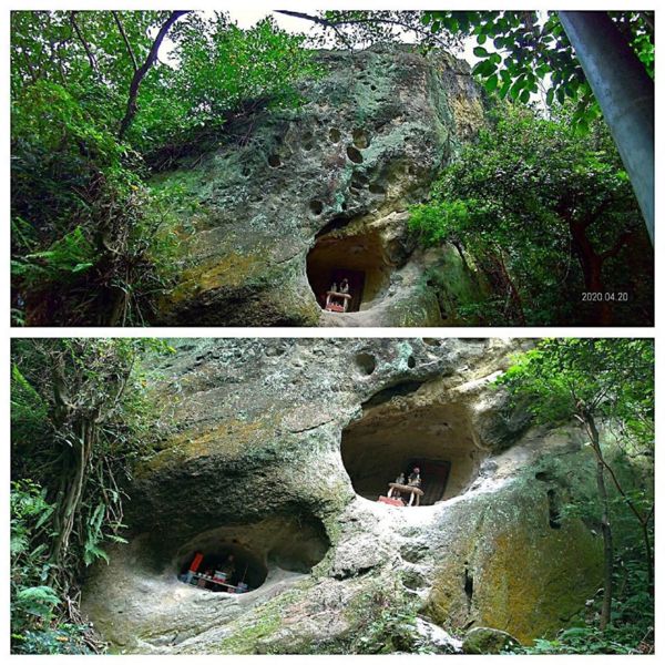 在鶯歌孫龍步道~階梯步道旁巨大的岩石上,有許多大大小小岩洞,2個較大的岩洞放神像。