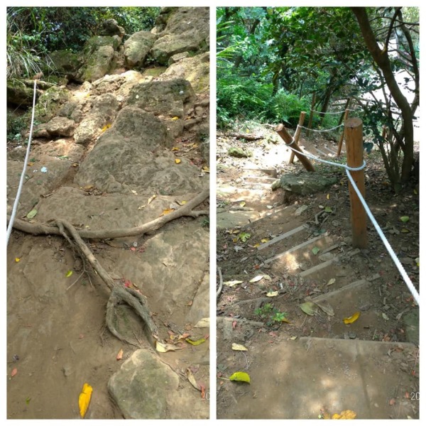在鶯歌步道開始拉繩攀岩,還好我帶了登山杖。