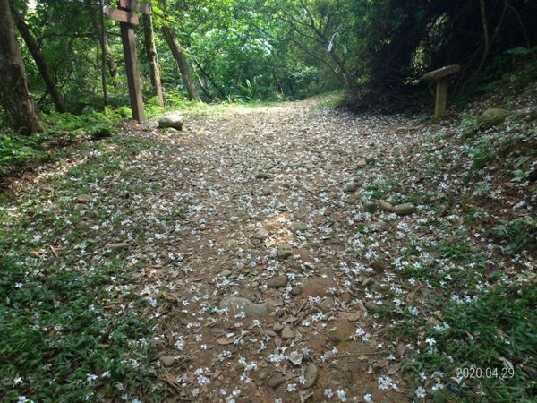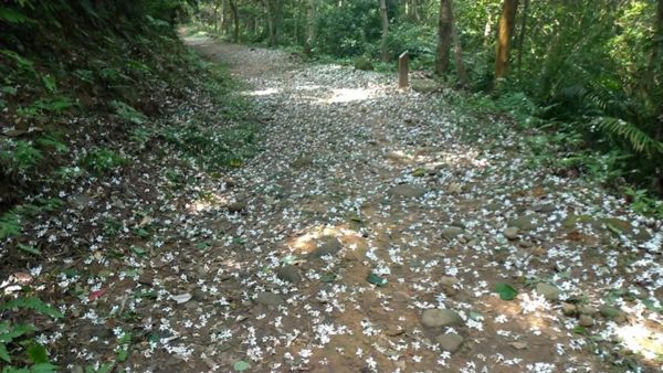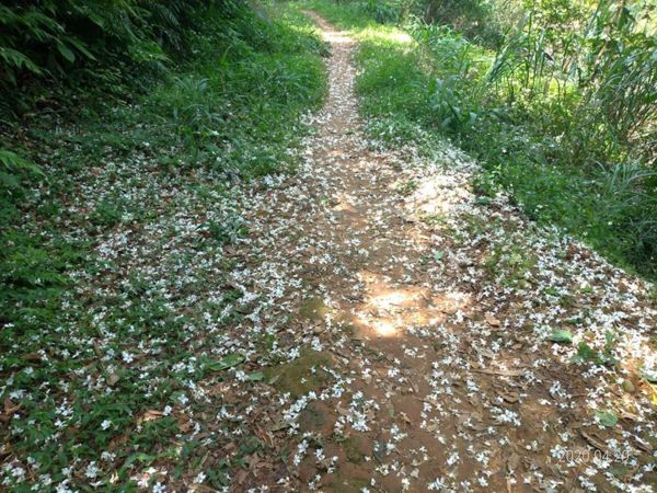林口新林步道第1段~第2段之間,嘩∼∼∼真美的油桐花季落花步道。↓↓↓