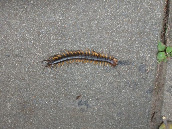 走回林口新寮步道,沒事爬到人行步道幹麻?被踩死了,超過10公分的蜈蚣。↓↓↓