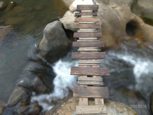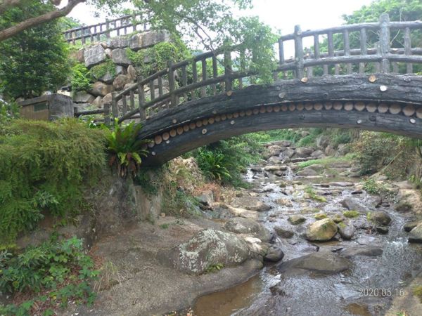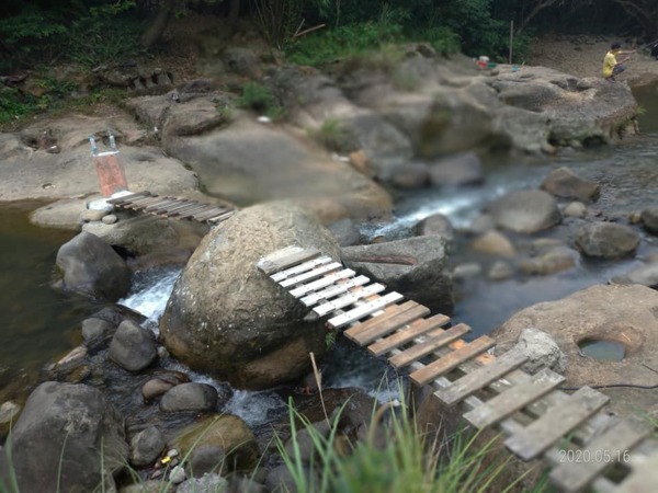 先跨越2個搖搖晃晃木板橋到小溪對岸,挑個喜歡的位置坐下來玩水。↓↓↓