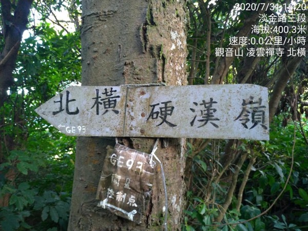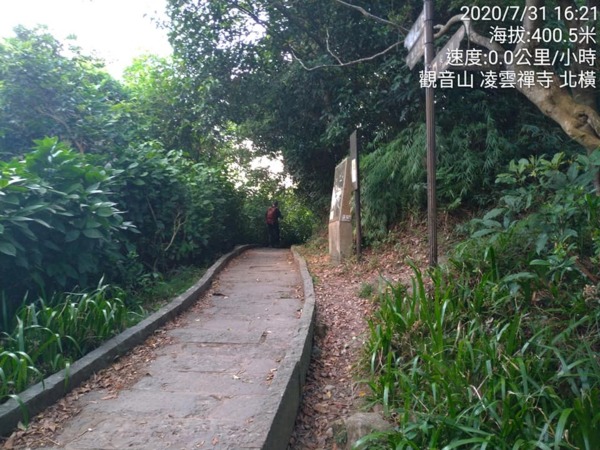 今天的行程:從凌雲禪寺→尖山步道→左轉北橫一段→經過盤絲亭→再左轉尖山步道支線→凌雲尖→北橫二段→右轉龍女岩→硬漢嶺→左轉硬漢嶺步道下山→凌雲禪寺。