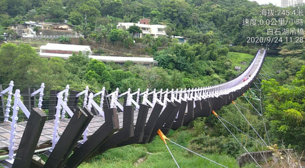 在白石湖吊橋~看到我最愛的淡紫色吊橋。↓↓↓
