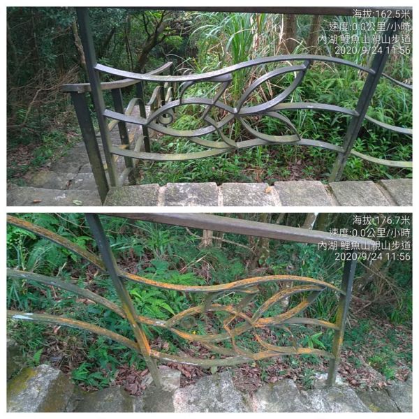 在鯉魚山步道~扶手鐵欄桿都鑄成魚的形狀。↓↓↓
