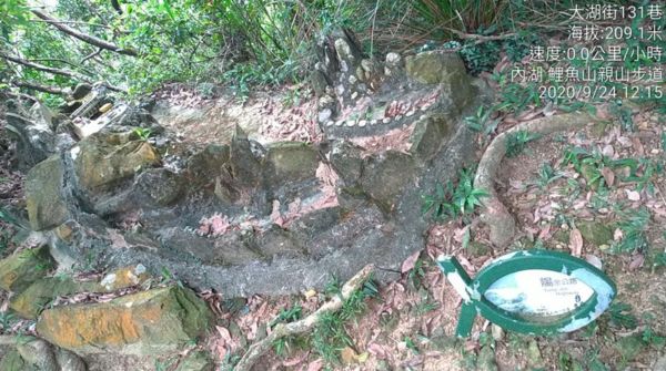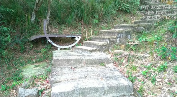 印象中附近應該還有一條鯉魚山步道,於是順著柏油路再繼續往下坡走沒幾分鐘,果然看到公車站牌和鯉魚山步道登山口。