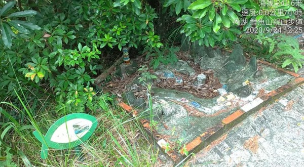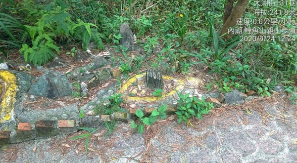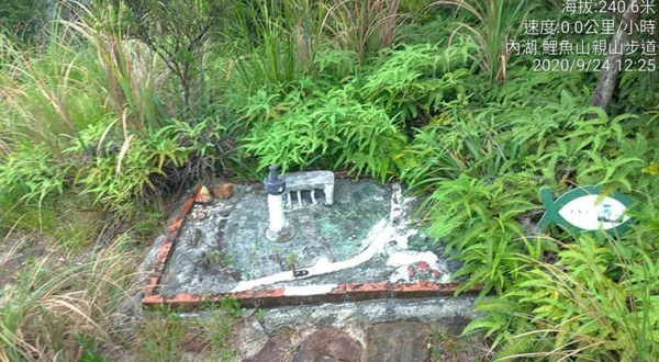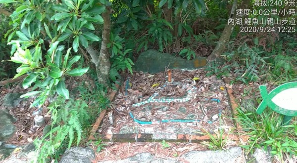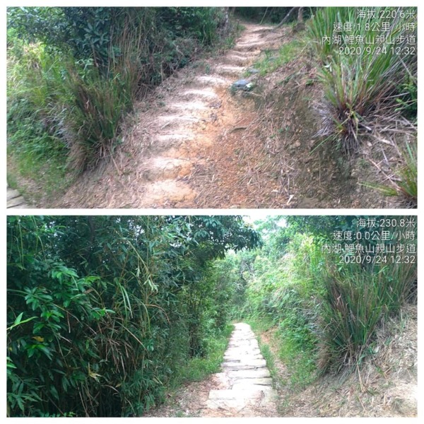 在鯉魚山步道~應該是山頂了,下著毛毛細雨,下坡路段小心濕滑,慢慢走。↓↓↓