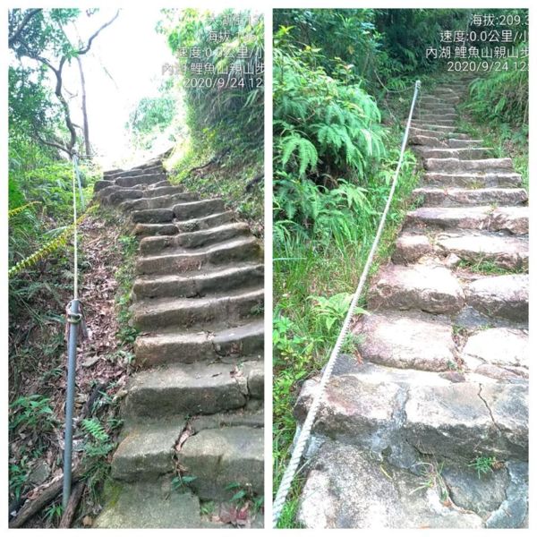 在鯉魚山步道~非常陡降,增加了拉繩索輔助。↓↓↓