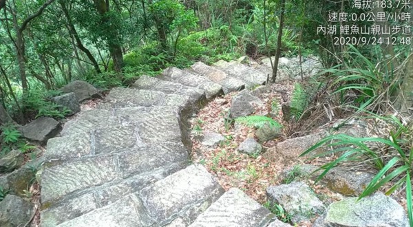 在鯉魚山步道~先爬岩石階梯步道上山。↓↓↓