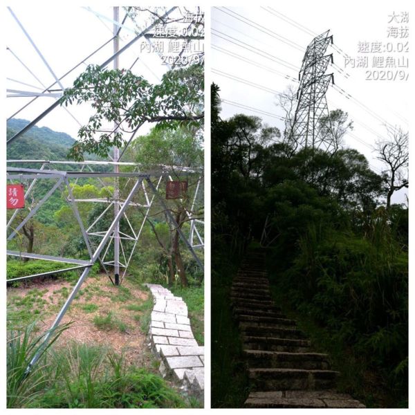 在鯉魚山步道~高壓電塔的「茲∼茲∼」聲很可怕,快閃人。電塔很可怕,還是要從它底下鑽過。↓↓↓