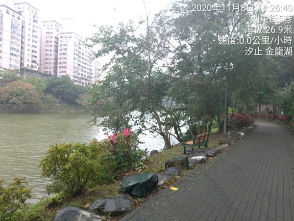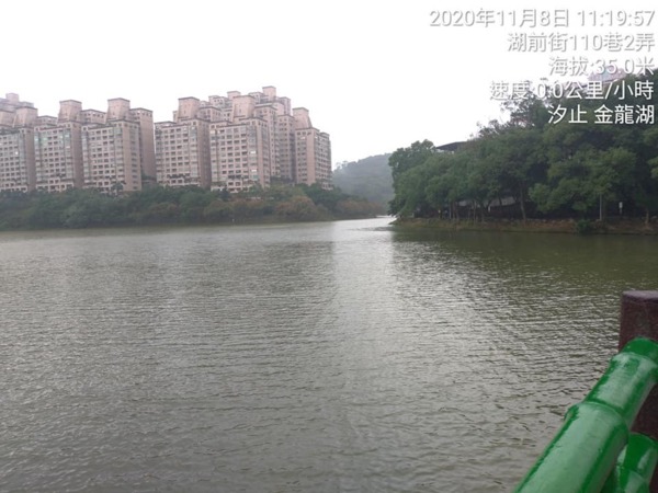 在金龍里站下,走不到3分鐘,轉個彎就看到了煙雨濛濛的【金龍湖】。↓↓↓