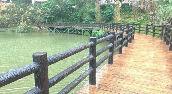 昨天還熱到31度,今天驟降10度,唉 ! 我怎麼挑了一個風雨交加的天氣來逛【金龍湖】呢?傘被風吹的抓不住,細雨飄在臉上,怎麼拍照、錄影?而且陰天拍不出湖光山色之明亮,只好想像煙雨濛濛的詩情畫意囉!