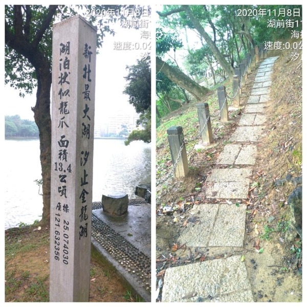 【金龍湖】,台北盆地最大的湖,原本舊名稱為【匠頭陂】,初闢於清朝乾隆時代,為人工埤塘,作為灌溉用途。由於早年有工匠在此地砍伐樟樹, 做為軍工料,以供台灣水師修造船隻之用,工匠的頭子,稱為【匠頭】,因此便以【匠頭陂】作為埤塘的名稱。後人因湖泊狀似龍爪,因此命名為【金龍湖】。