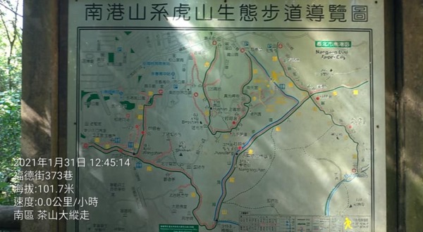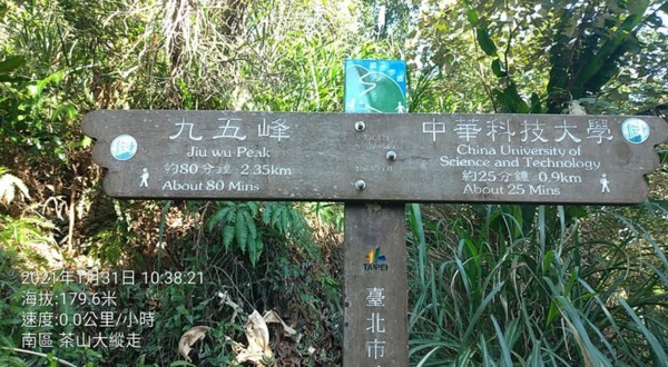 今天南縱走 茶香步道:從南港 中華科技大學登山口→南港山→九五峰→黃蟬園→虎山步道,含拍照、上傳FB、休息,約2.5小時。↓↓↓