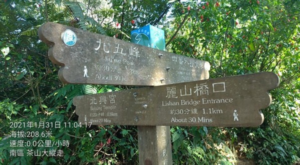 爬上南港山,來到山徑上的十字路口,上次是從「麗山橋」登山口爬上來,直接的往「北興宮」下山到松山區。今天則是從「中華科技大學」登山口爬上來,繼續往「九五峰」前進。↓↓↓