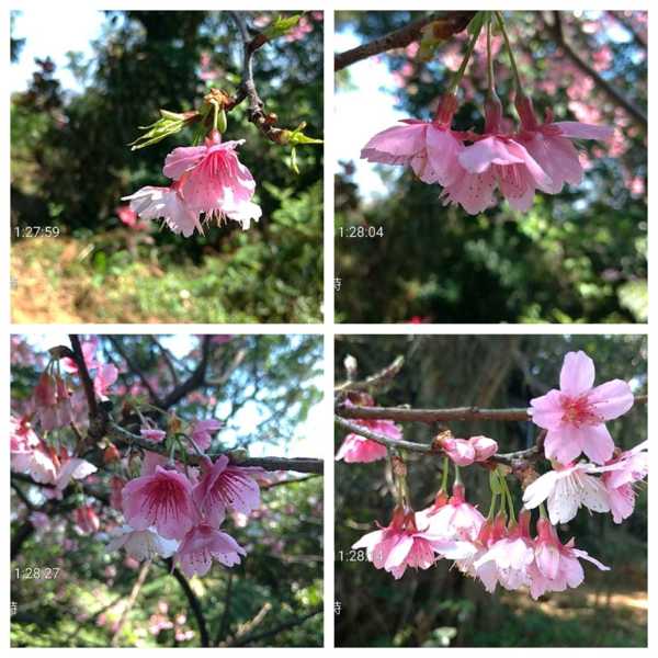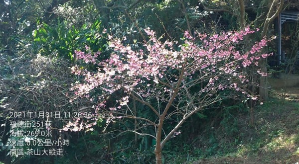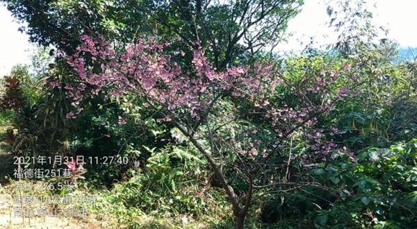 山頂涼亭旁,一棵粉紅色系的櫻花。↓↓↓