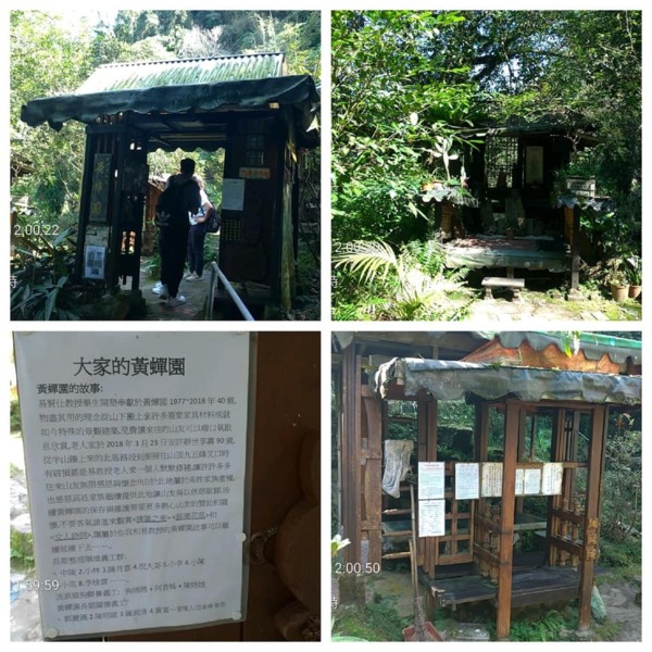 「黃蟬園」,是一位退休的老教授每天爬上來,獨到眼光,帶些別人不要的建材或古老的東西,慢慢砌築了幾座涼亭,古色古香,他90歲過逝後,其他山友繼續維護。