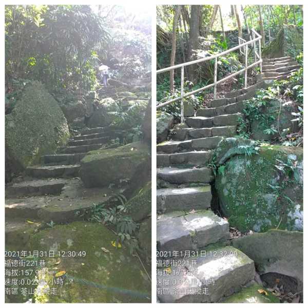 過了「黃蟬園」之後,雖說是陡降石階步道,但地面乾躁,又有不鏽鋼扶手,算得上很好走的步道。↓↓↓