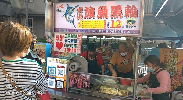 再接再厲,旗魚黑輪,自己沾辣椒醬、芥末醬,比東港的還好吃,經常會大排長龍。