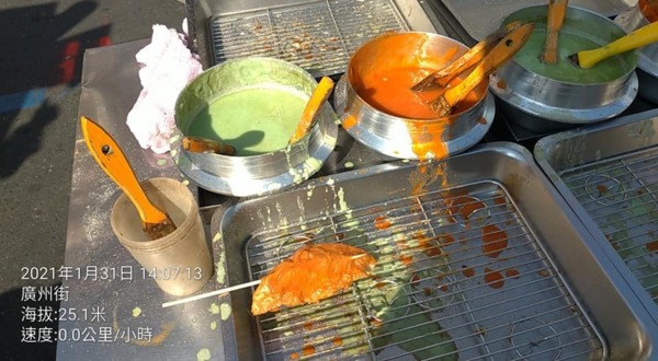 在艋舺廣州街夜市~萬華龍山寺必吃,旗魚黑輪,自己沾辣椒醬、芥末醬,比東港的還好吃,經常會大排長龍。↓↓↓