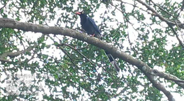 一群6隻台灣藍鵲飛過,沒帶相機,手機只能勉強了。↓↓↓