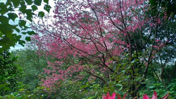 正是櫻花季節,步道旁偶爾會萬綠叢中一點紅。↓↓↓