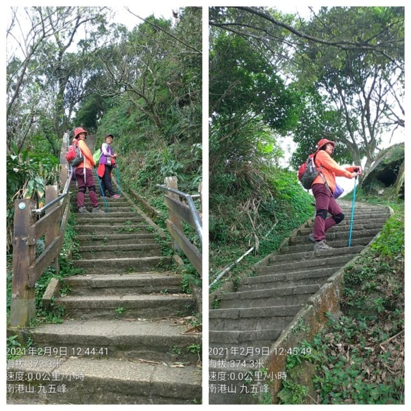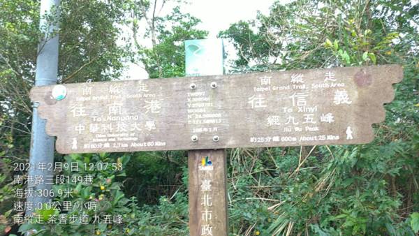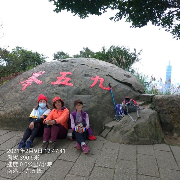 南縱走:九五峰、南港山、姆指山,從南港展覽館捷運站→中華科技大學→3座小百岳→象山捷運站,含拍照、休息約5小時。