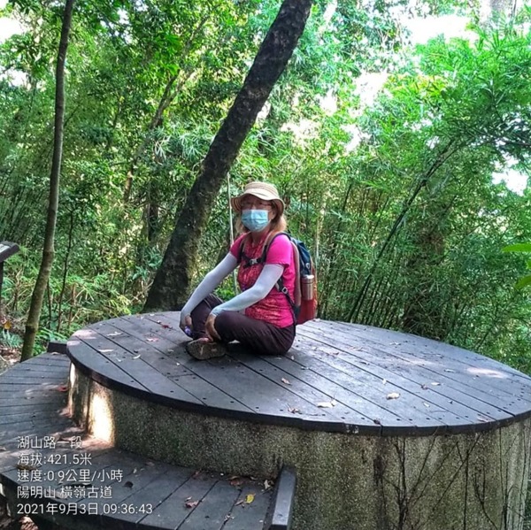 在陽明山。橫嶺古道~到此一遊。現在農曆7月,戴口罩半遮,免得嚇人。↓↓↓