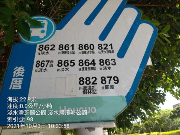 回程 : 淺水灣芝蘭公園→後厝站→淡水客運公車860、861、862、863、864、865、867、879、882→淡水捷運站。