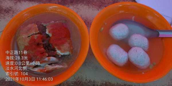 在阿給老店~來淡水必吃阿給+魚丸湯,太熱懶得爬上真理街,就在河邊吃。