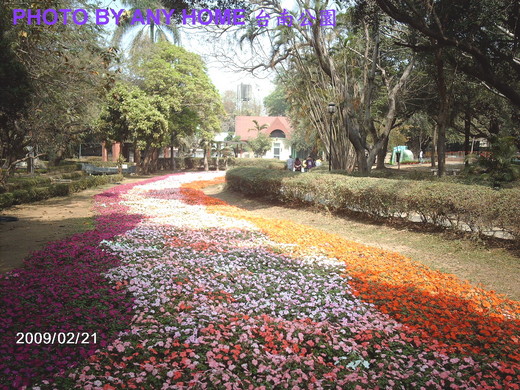 除了農場搬移過來的大批盆栽,公園本身也有許多會開花的大樹毫不遜色地爭奇鬥豔,像是滿天星似的粉紅色豔紫荊,九重葛的顏色從暗紅、深紅、大紅、粉紅、米白、純白、甚至於少見的金黃色,真是讓人賞心悅目。