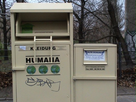 最勁爆的是讓人看到德國人作事的態度,許多街頭都有個一人高的大型回收箱,我猜大概是舊衣服回收,旁邊還有一個略小的箱子,上面畫的是鞋子。就算我們不懂德文,一看也知道是舊鞋回收,真不知道舊鞋回收後如何處理?