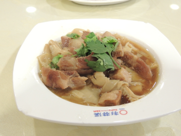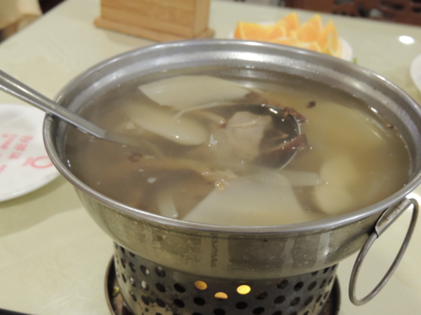 竹筍排骨湯,雖然是大鍋燉煮,我相信排骨一定有先川燙再清洗,完全沒有腥臭味或浮喳,湯頭清爽,小小缺點:香菇用的是大陸產便宜乾香菇,完全沒有香味,如果是台灣產的乾香菇,那就更完美了!