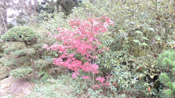 花園、杉樹林步道、溪畔的步道栽種了許多楓樹為路樹,從綠色