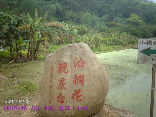 我是十足「鐵齒」的人,昨天特地安排時間,踏春訪白雪桐花,玩的亂七八糟卻沒近看到想像中雪花片片、漫天飛舞的油桐花,怎能就此作罷 ? 再翻閱「2007客家桐花祭導覽手冊」,桃園龍潭的小粗坑古道、清水坑生態古道映入眼簾,旁邊的照片是遍地落花,那麼如果我坐在梯階或花海之中,也夠美的意境了,而且,你看看 : 小粗坑、清水坑,這名字一定也有典故吧 !