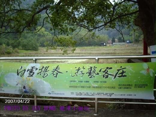 車子又開上三號高速公路,從桃園的龍潭交流道下,左側接113乙縣道後,再左轉來到113縣道走到底接上3乙省道,當我停在路口猶豫不決,向路口7-11問路,小姐順手拿了本「2007桃園客家桐花祭桐花護照」,並仔細的解說,不是在地人還真的搞不清楚這些連聽都沒聽過、地圖上也沒有的地名,然而,讓我驚豔不已,並打定主意,以後有空就專跑這些據有傳統地方色彩的有意思旅遊點,它沒有觀光客、沒有熱鬧的商業行為或應運而生的攤販,有的是純樸農村,有的是往日情懷,讓人徜徉其間流連忘返,我還會繼續發掘台灣農村的自然美,好東西和好朋友分響,做個開路先鋒探訪,再介紹給大家囉 !