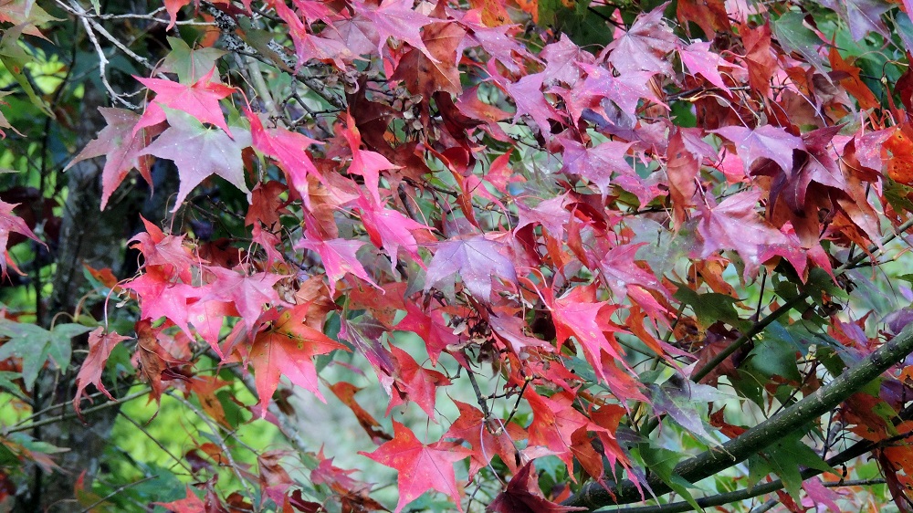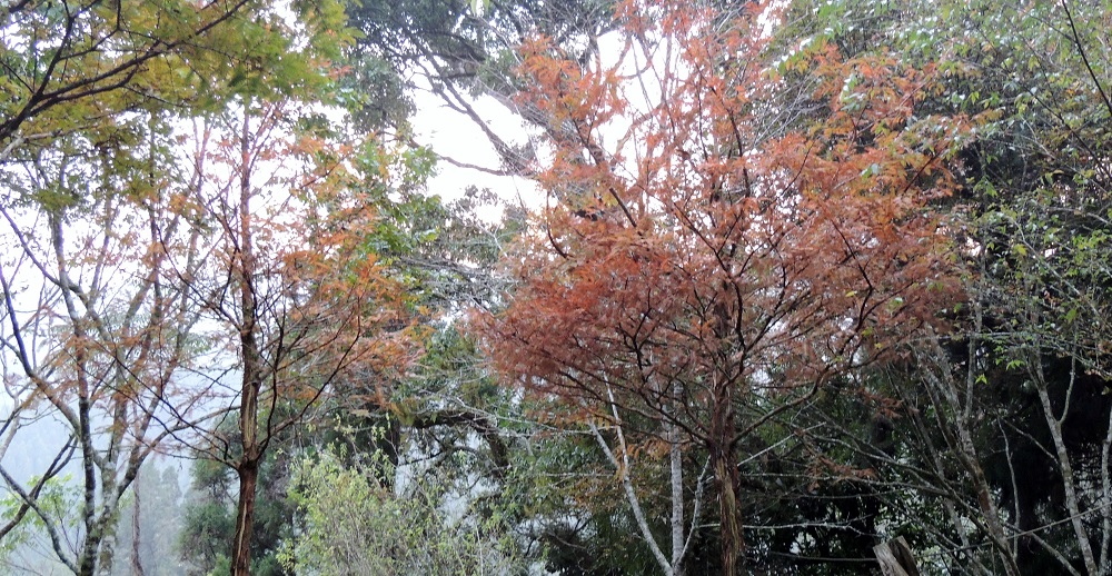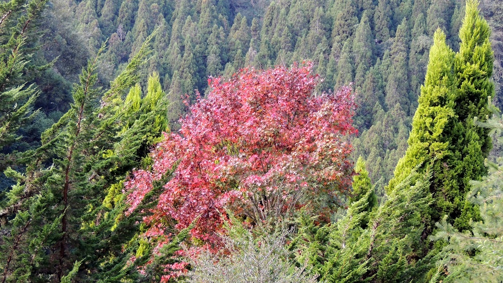 杉林溪海拔1600M,紅色楓葉最多的藥花園沒有往年多,可能我們來的時間不對,只見遍地落葉,還是有些微小小失望。 ↓↓↓