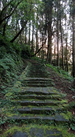 黃昏走在往燕庵瀑布的步道,王維詩云:『空山不見人,但聞人語響,返景入深林,復照青苔上。』此刻夕陽餘暉僅聞鳥聲,也只有我一個人,一點都不孤獨