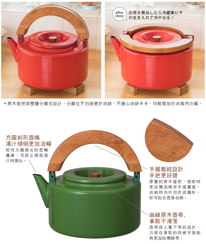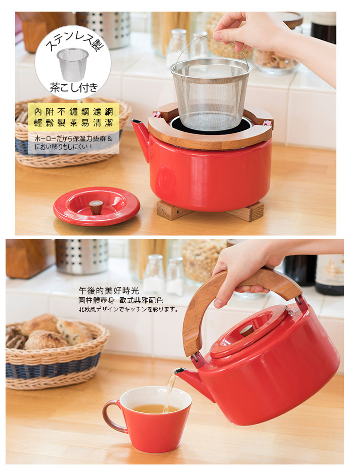 質地CB Japan 北歐系列琺瑯原木泡茶兩用壺-熱情紅 - 016094276擁有推薦-杯壺茶具
