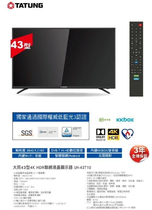 016184899 大同 43型4K HDR聯網液晶顯示器+視訊盒UH-43T10 - 016184899,