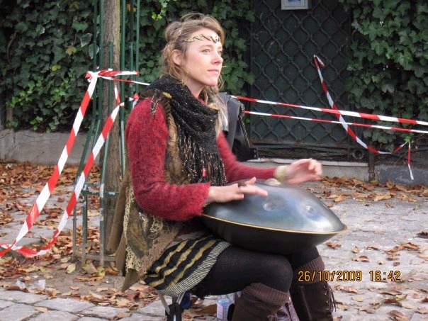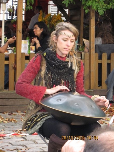 在藝術家廣場附近看到這位年輕女子彈奏hang,