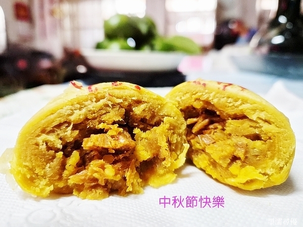 吃著自制咖哩口味月餅