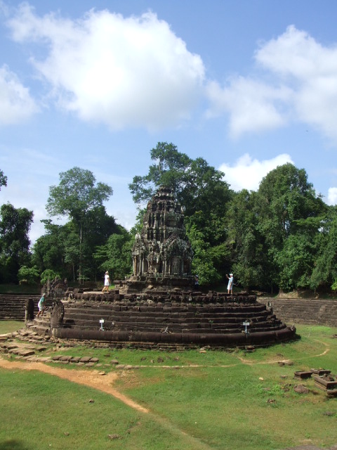 涅槃宮是古代的醫院,由於我們去的時候是旱季,所以無緣看到聖水,但也因為如此能夠跨越過乾涸的聖水到達醫院。中心有四種動物,聖水會分別自他們的口中流出,傳說聖水有治病的神奇療效。當然現在你必須要有良好的抵抗能力才能飲用聖水。樹叢環繞的醫院前還有一隻聖獸,在此我也必須要呼籲愛護古蹟的重要性。因為當我們一行人還在參觀的同時,突然聽見當地身著黃色上衣的管理人員大吼著,我們馬上探頭到底發生了什麼事。原來是中國遊客逕自爬上那頭聖獸想要拍照,還無視管理員的勸阻,真是太沒有水準了。雖然是國際知名旅遊景點,但如果觀光人士文化水準欠備,等於是害了那旅遊景點更何況是須維護的古蹟。