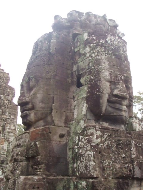 接下來就看到聞名全世界的高棉的微笑,親切溫暖的笑容迎接著每一位到來的人,讓我們一行人卸下相隔千年的心防。小歐還介紹一個特別的拍照景點,彷彿會和加亞華爾曼七世kiss。國王不再是遙不可及!然後有瘋王台,一個傳說中患麻瘋最後隱居的國王,但真品是在金邊博物館。十二生肖塔,又稱審判塔,現在看起來都一個模樣了。鬥象台,希望能夠親臨國王慎選坐騎的盛大場面。後來品嚐了冰涼透心的椰子汁,我身後的當地小妹妹一邊問我有沒有糖果一邊心虛得哈哈笑,模樣真可愛。來到柬埔寨後除了盛名的古蹟外,印象深刻的即是當地人純樸善良的笑容。