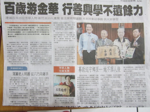 這篇報導是家住新豐鄉的好友廖英授於10月9日特地帶來給阿伯看的。由於是竹苗版的地方新聞版,住在龍潭的我是看不到的。但是見到好友來訪,心中大喜。
