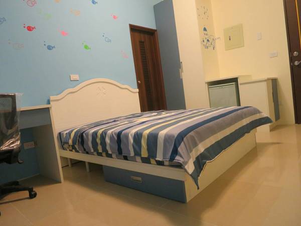 套房內部裝潢時尚、活潑,符合房客對【家】的要求,配備愛菲爾系統家具、雙人床組、全套家電、個人洗衣機。