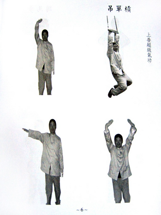 這本書,除了提倡站樁以促進健康之外,也提倡每天「吊單槓」。我之所以每天吊單槓,是受當今財政部長張盛和先生的影響。今年(一○二年)的春節期間,聯合報曾報導,張部長每天練吊單槓六十秒,長期下來,身高又增加一公分,這個消息使我急起效法,於是我很快在我的車庫裡,自製了一副單槓,每天早晨吊六十秒(每次十秒,吊六次),至今將近半年,覺得自己的臂力增加不少,也強化了心肺大小腸的功能,最重要的是矯正脊椎,也免於「老倒縮」(台語)的尷尬。
