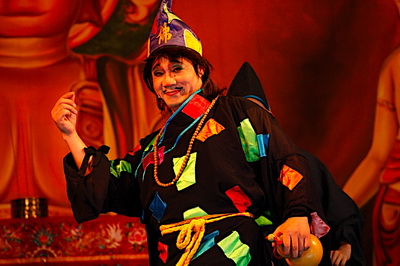 在大批的文學、電影、戲劇作品中,濟公的形象多為酒肉和尚。演濟公比較有名的像周星馳、石英、周明增、明華園陳勝在(圖一),濟公喝酒吃狗肉,玩世不恭,大家也都看得笑呵呵。不知多少修道人也以為喝酒吃狗肉也能成佛。