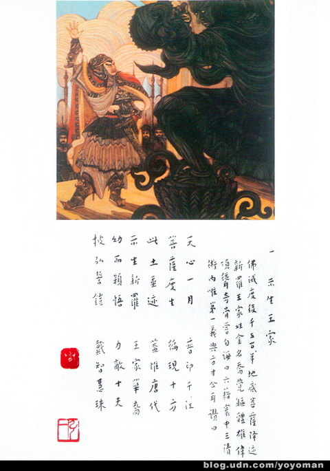 佛滅度後千五百年,地藏菩薩降跡新羅王家,姓金,名喬覺。軀體雄偉,頂聳奇骨,嘗自誨曰:六籍寰中,三清術內,唯第一義與方寸合耳。